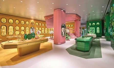 Superbe flagship de l'enseigne ouvert fin 2023 qui présente sa nouvelle identité de marque, ses nouvelles couleurs sur 2 étages avec un gros travail sur le story telling. Des maquettes au rez de chaussée qui rappellent les temps forts de la griffe, détaillent certains process de fabrication. Conçue par Giovanna Engelbert, directrice mondiale de la création chez Swarovski, la boutique rend hommage à la beauté du cristal. Sur 1.300 mètres carrés, répartis sur deux étages, deux pierres précieuses géantes encadrent l'entrée, tandis qu'une myriade d'Octagon (cristaux de forme octogonale, ndlr) ornent les murs.